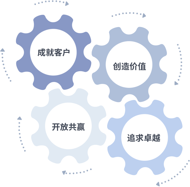 成就客户是一切决策的出发点,创造价值是衡量所有工作的标准,追求卓越是ag亚娱做事做人的态度,开放共赢是ag亚娱的格局也是最终的结果。价值观的齿轮环环相扣,推动着组织里的每个人不断向前。