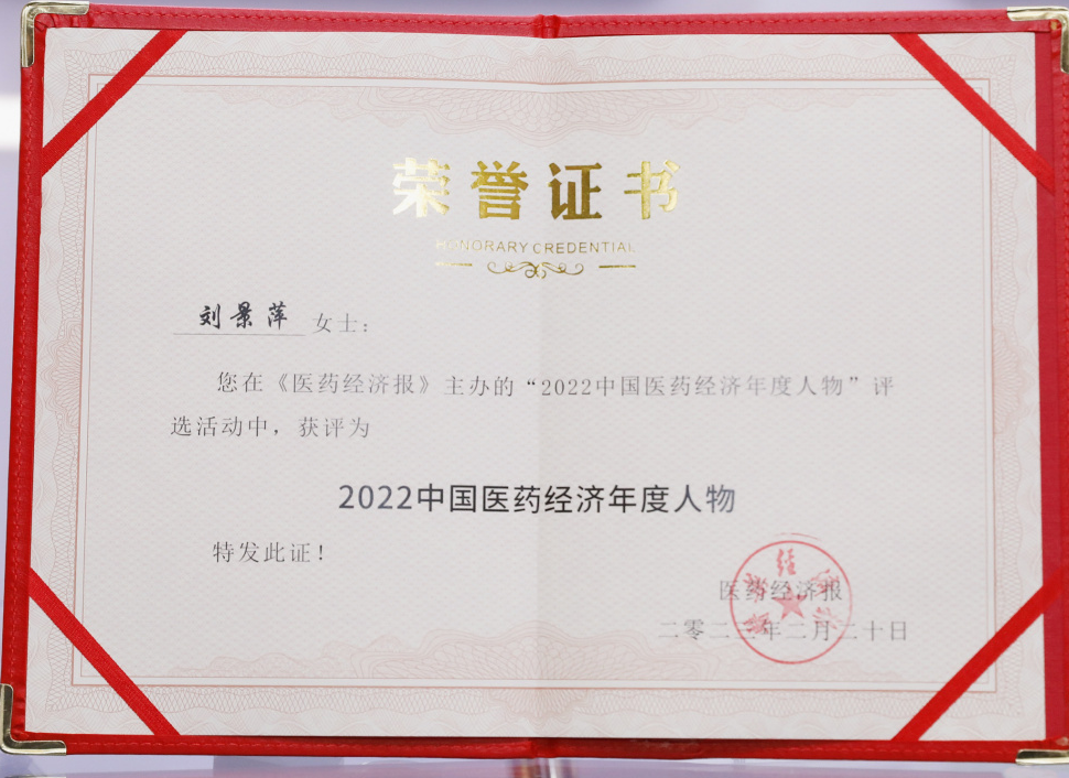 ag亚娱药业集团董事长刘景萍当选“2022中国医药经济年度人物”