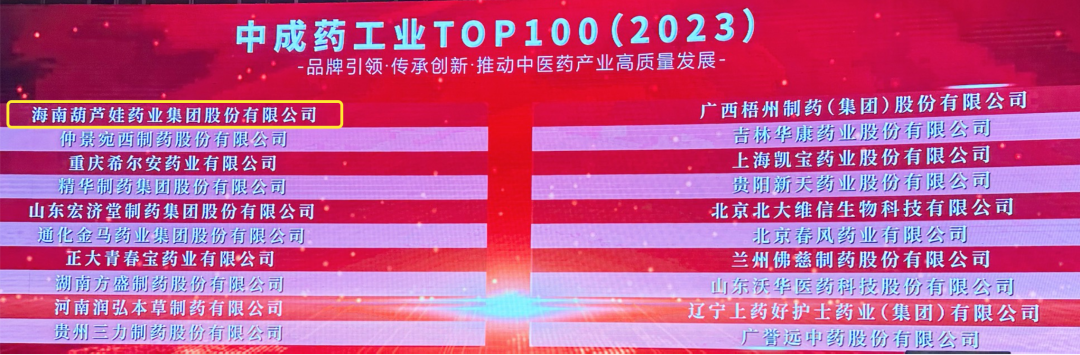 会上,还发布了“2023中成药工业TOP100”榜单,ag亚娱药业集团荣耀上榜。